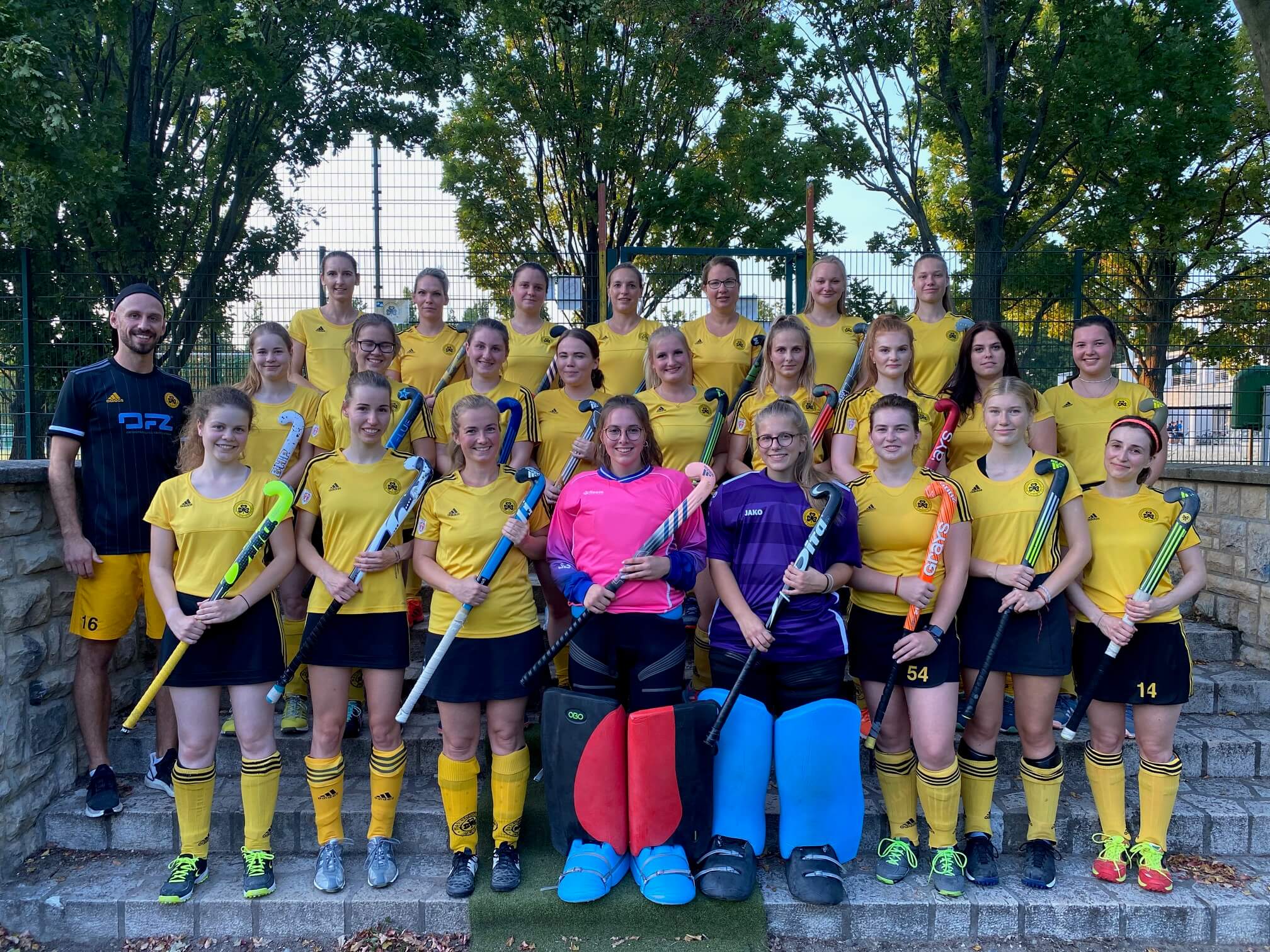 Der Mariendorfer Hockey-Club spielt traditionell in Gelb bei Heimspielen – auffällig, kraftvoll und unverwechselbar. Auswärts läuft unser Team in klassischem Schwarz auf. Zwei Farben, ein Team – und voller Einsatz, egal auf welchem Platz!